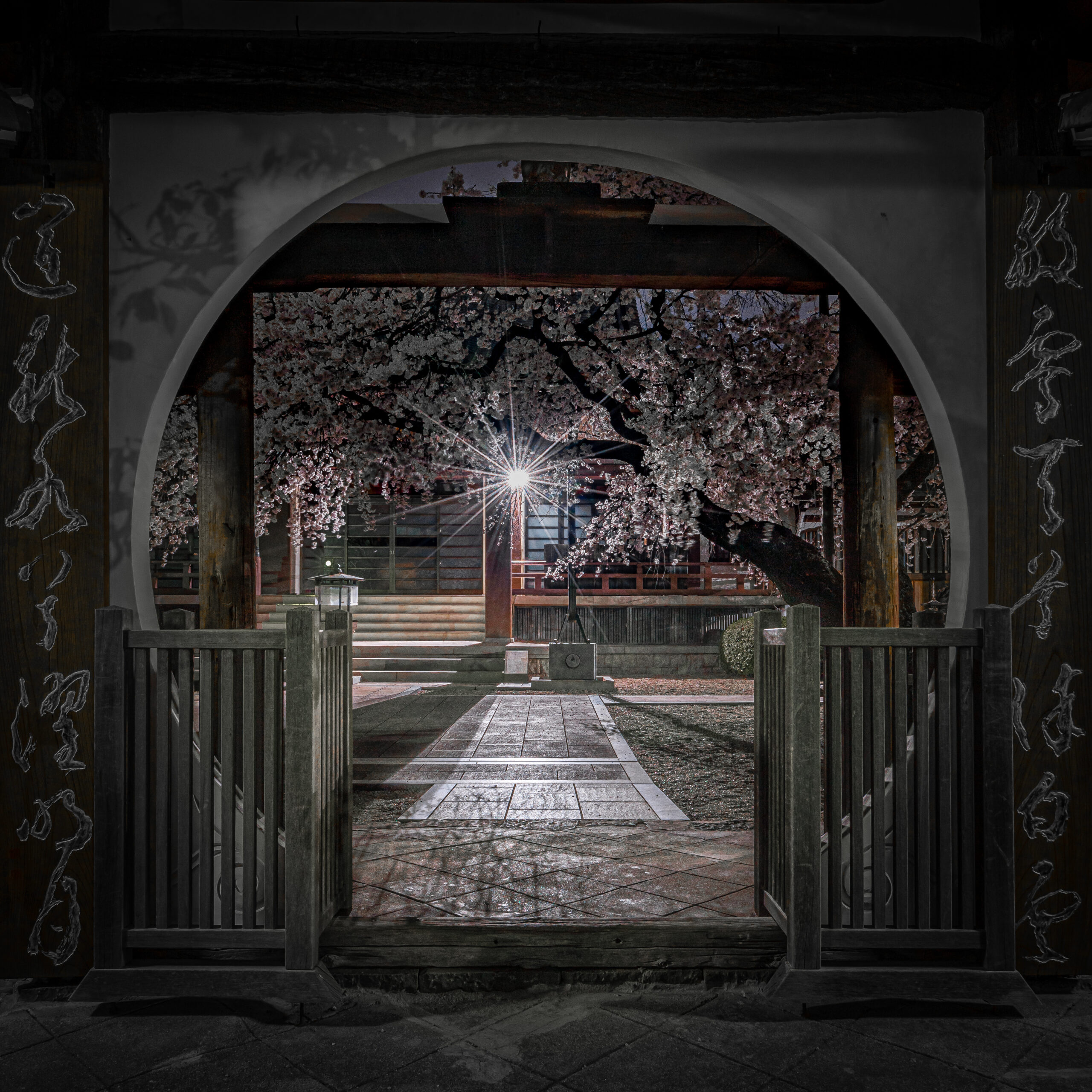 【門を額縁に見立てて夜桜を撮影🌸 ※写真をクリックまたはタップしてね♪】